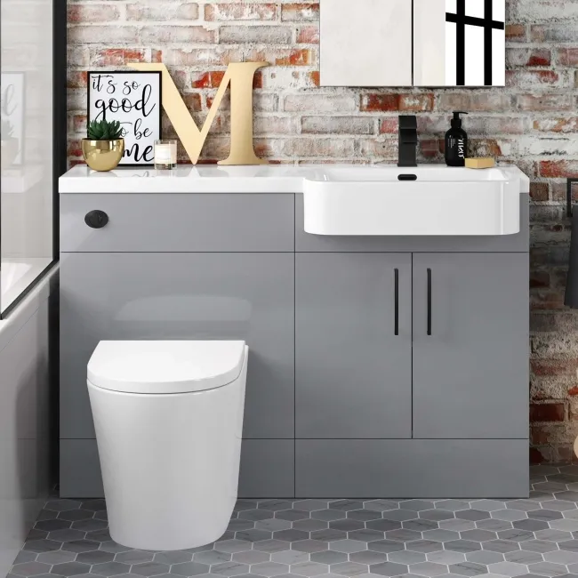 Harper Stone Grey Combination Vanity Basin and Boston Toilet 1200mm - Black Accents - Right Handed